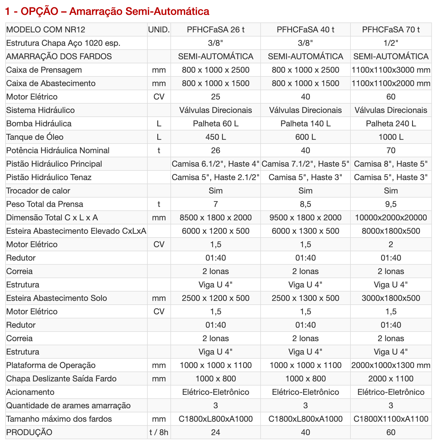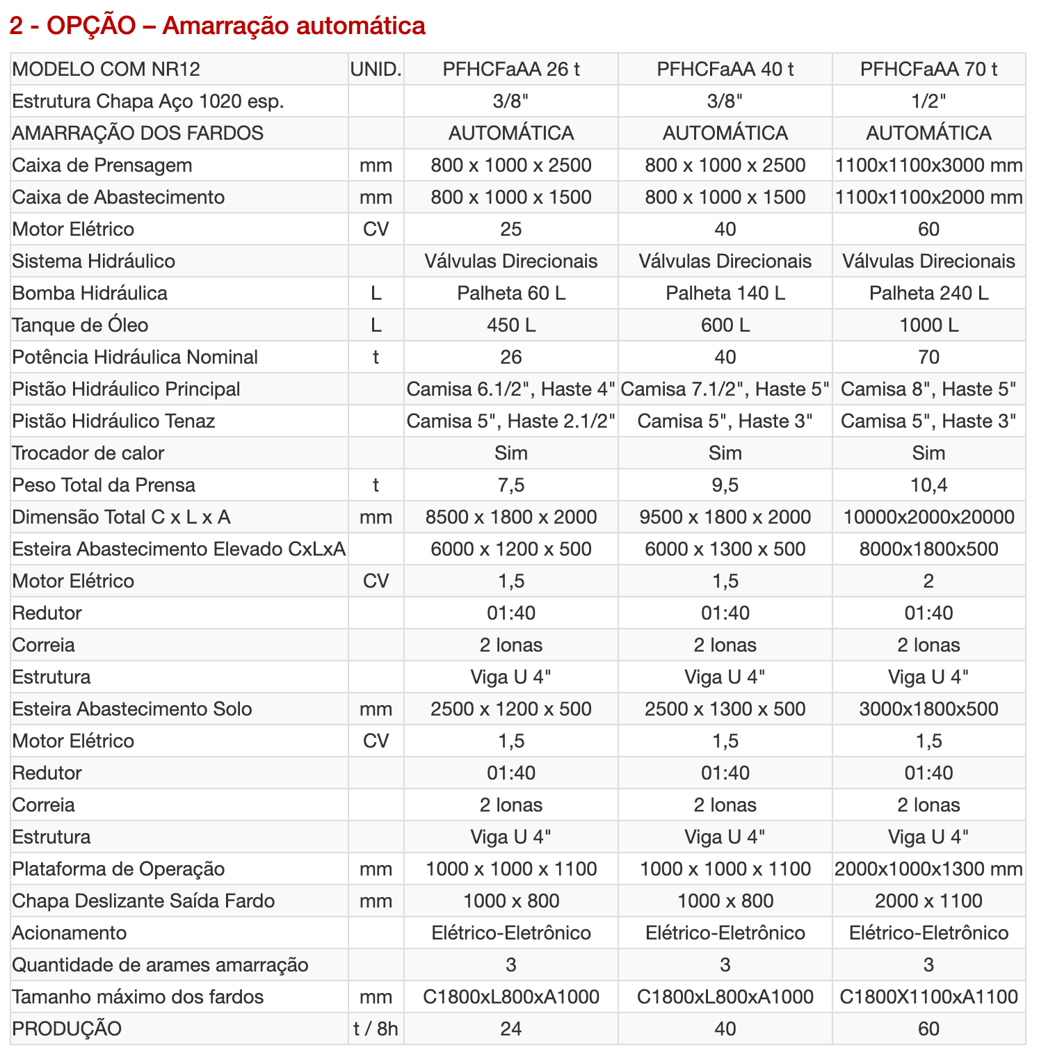 Modelos de prensas enfardadeiras abertas horizontais continuas com facas com NR12.